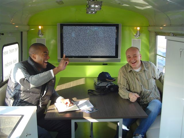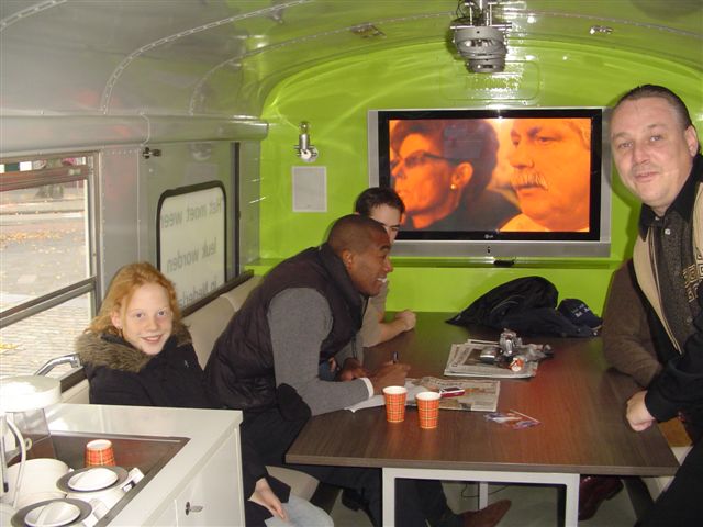 Even poseren voor de bus We hebben samen erg veel lol in de campagnebus