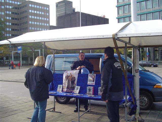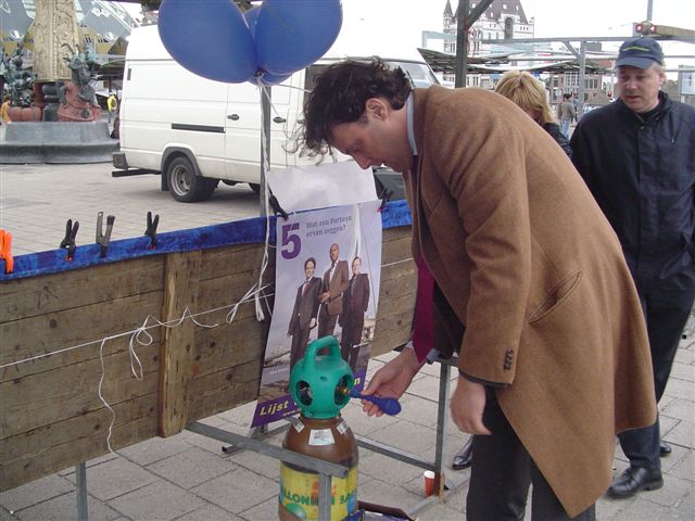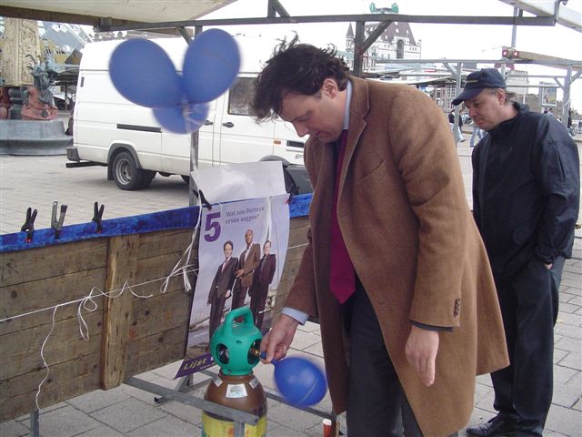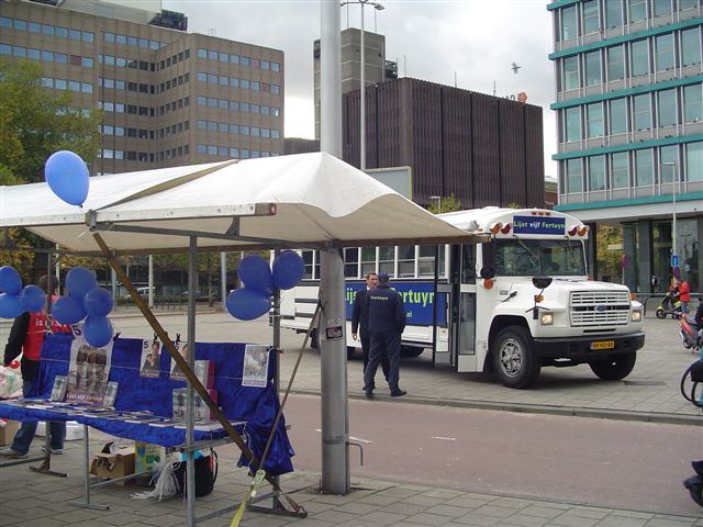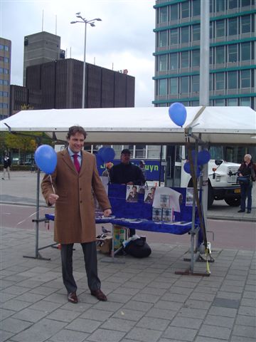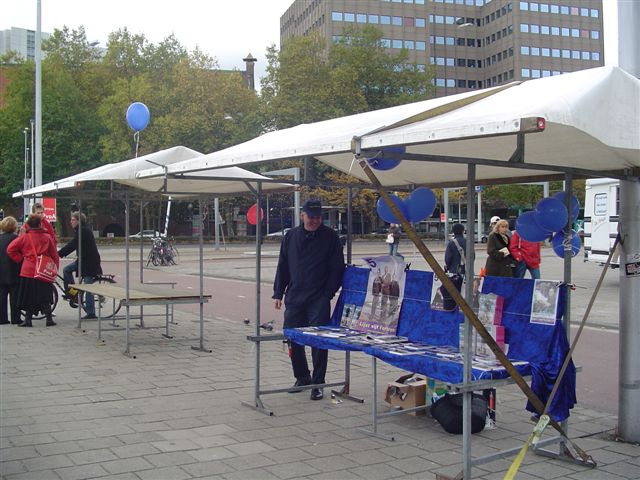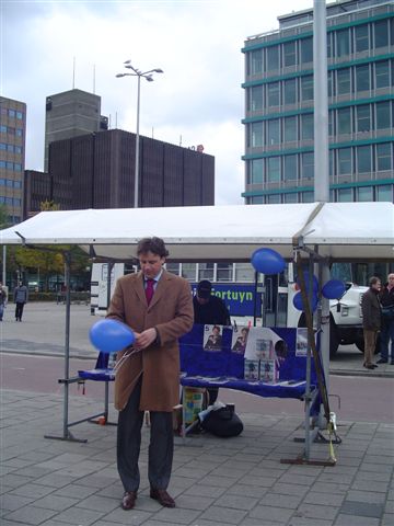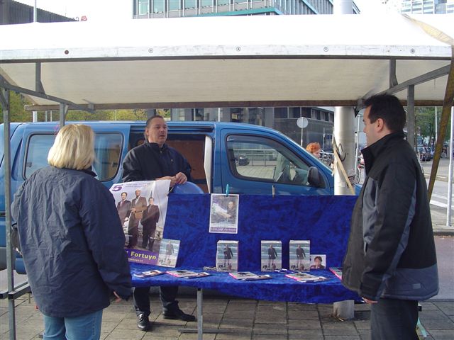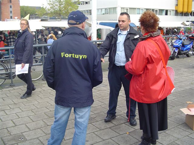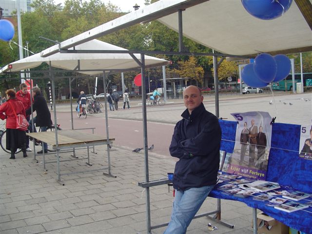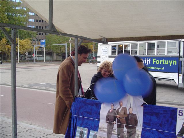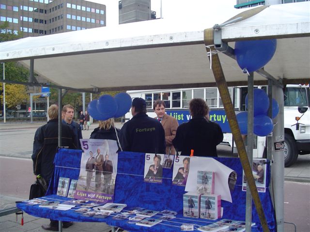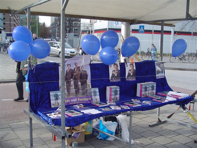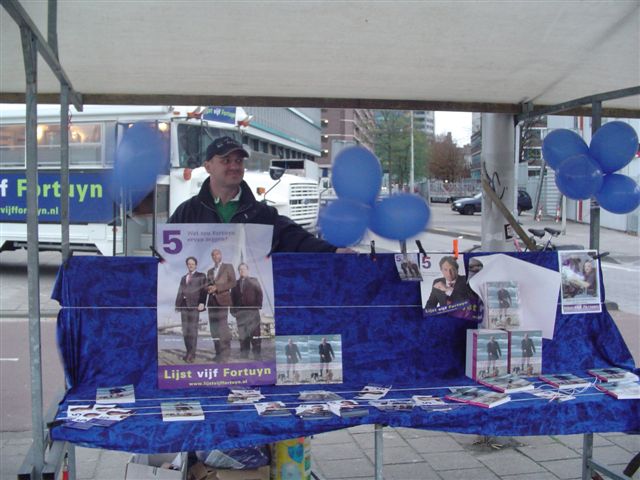 Een aantal foto's van de Lijst vijf Fortuyn markt kraam