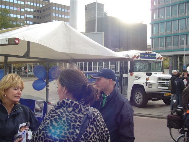 gezellig aan in de Lijst vijf Fortuyn bus.