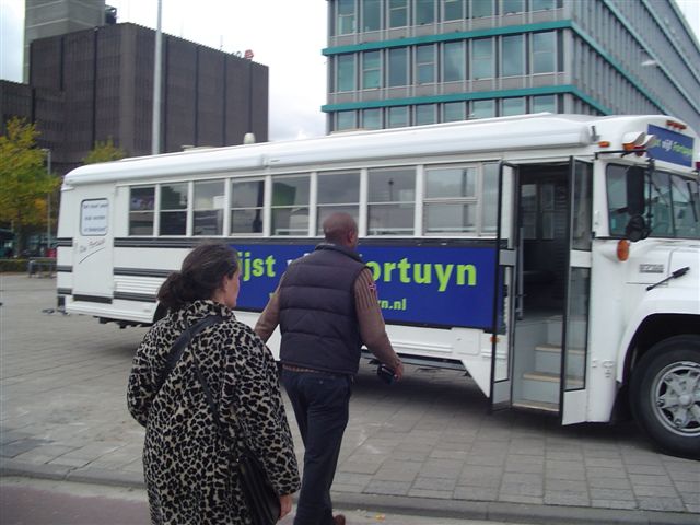 De Lijst vijf Fortuyn bus met Cobie en Herman die 's morgens al in Dordrecht