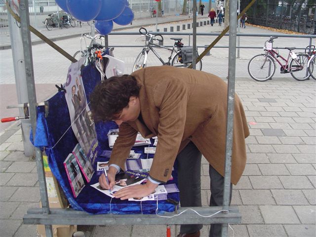 Even een handtekening plaatsen met een persoonlijke note erbij schrijven voor een Lijst vijf Fortuyn fan.