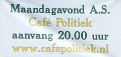 Een politiek debat in Doelencafe georganiseerd door cafepolitiek.nl. Er waren de volgende kandidaten Joćo Varela Lijst vijf Fortuyn, Ageeth Telleman D'66, Martin van Haeften, PvdA