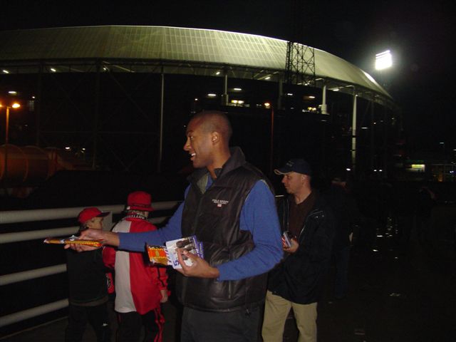 Een taaitaai poppen uitdeelactie bij de Kuip voor de wedstrijd Feijenoord-AZ, die Feijenoord heeft gewonnen met 3-2.