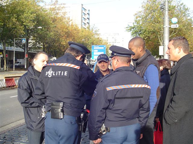 Eerst even met de Politie overleggen hoe de route loopt die we mogen volgen