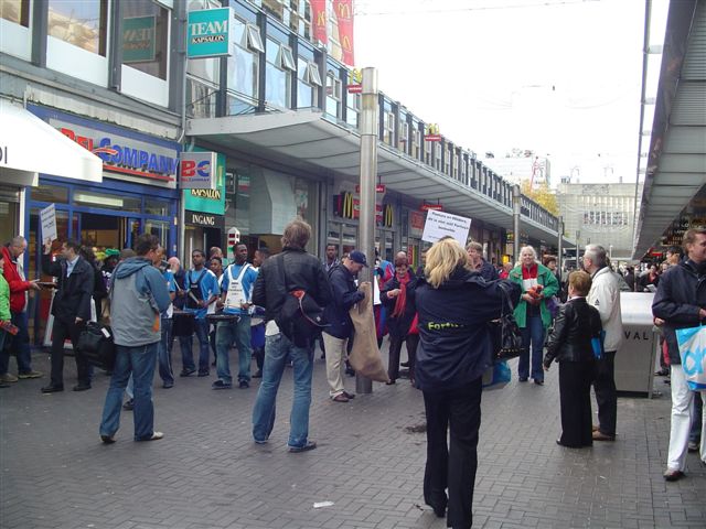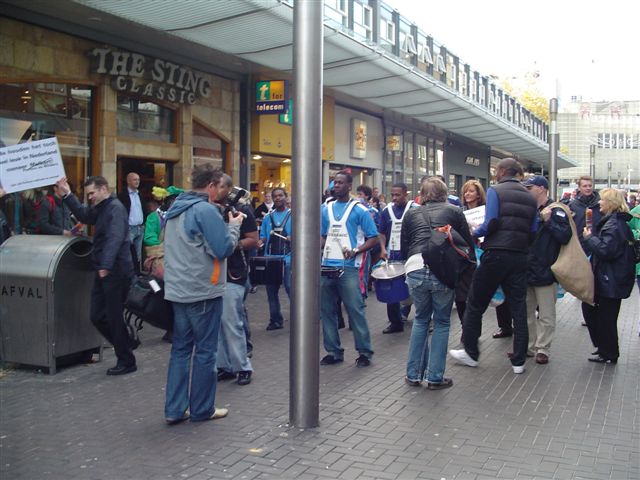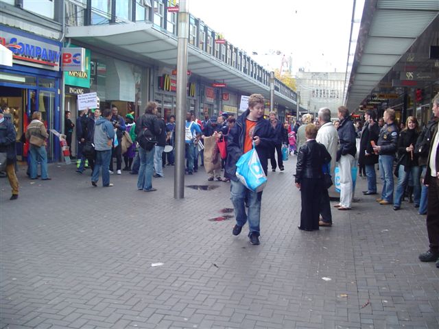 allen gezellig swingend de stad door, beginnend op de Lijnbaan.