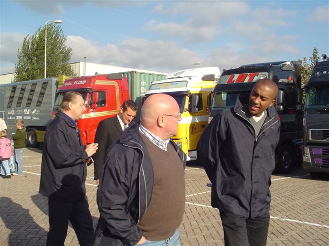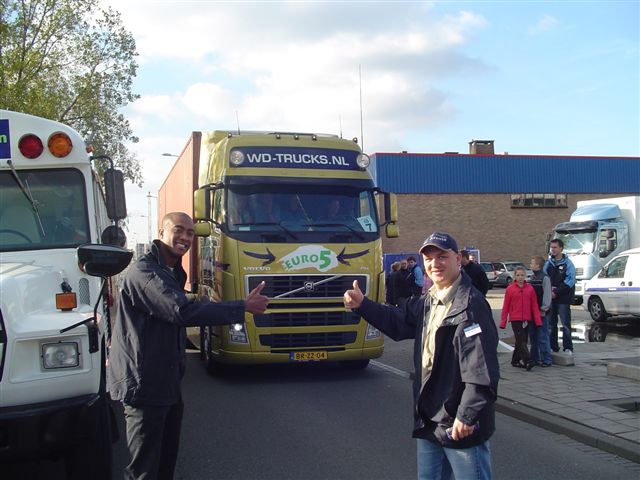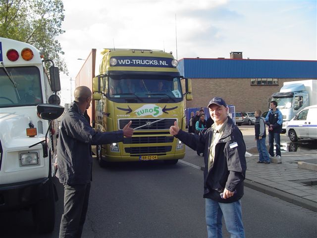 voor een van de vrachtwagens.